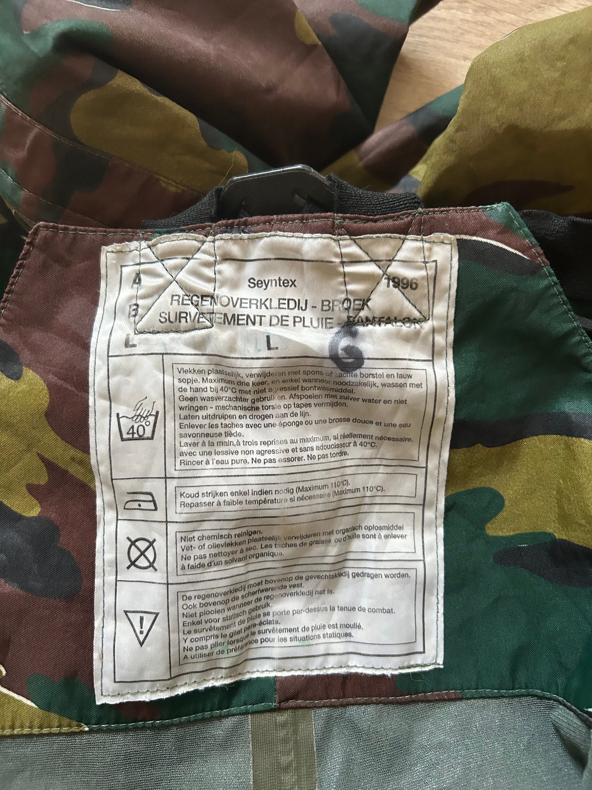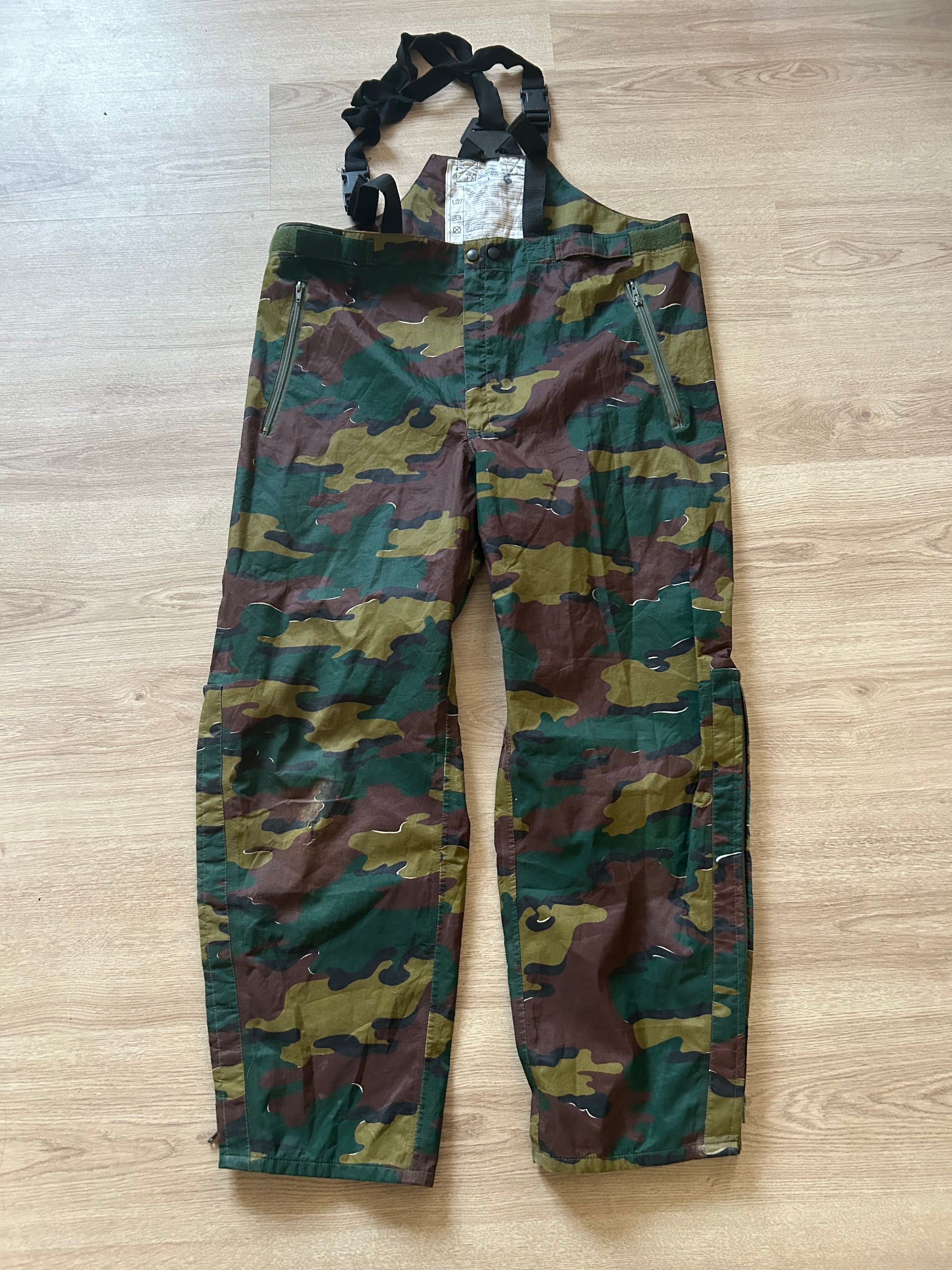 Manufactured by Seyntex in 1996, this item was issued, but it is in overall very good condition. All zippers are present and work well, there are also suspenders, and extra zippers on the side of ankles up to the knee. The only visibly damaged spot is on one knee as shown in photos.