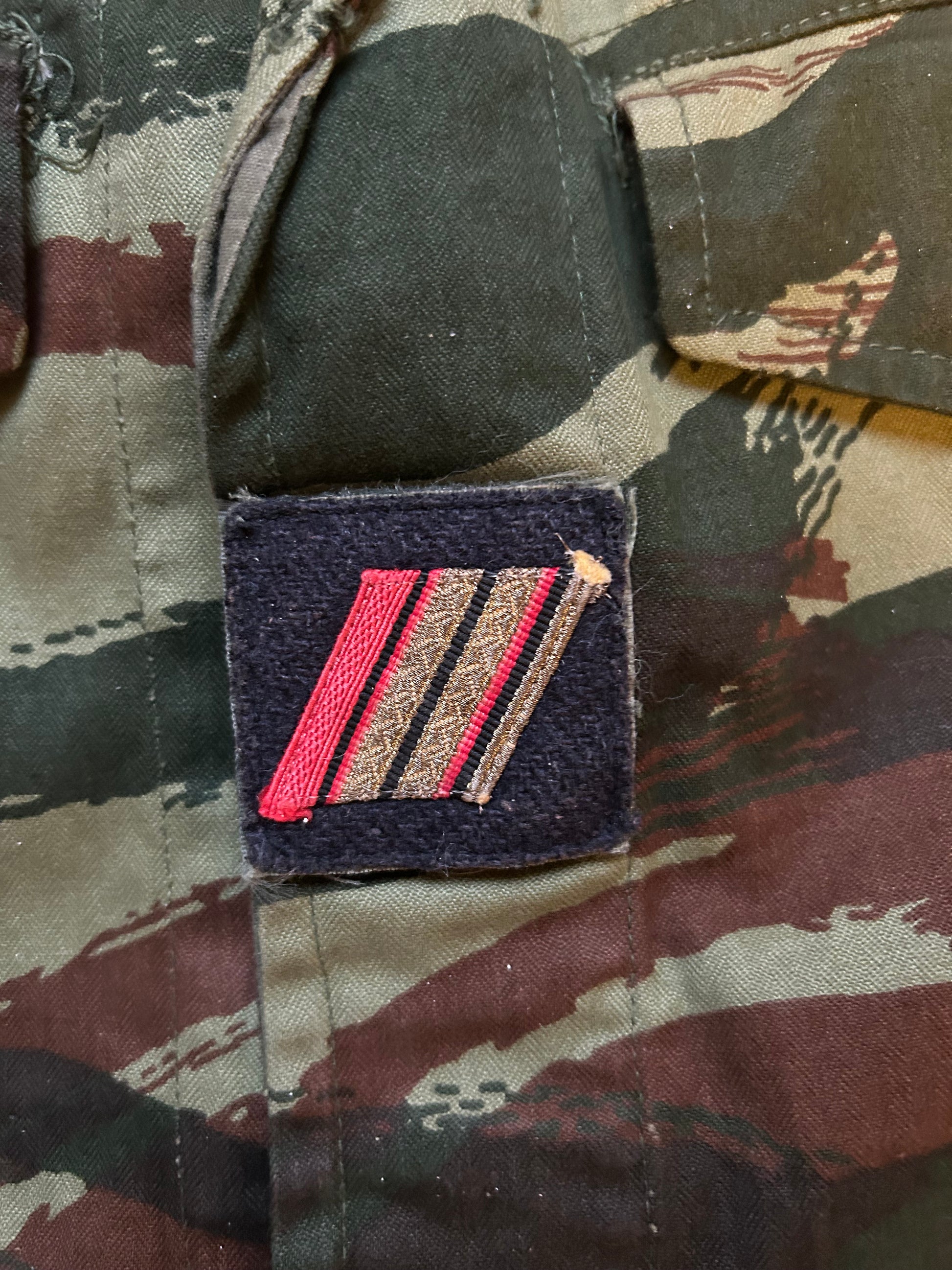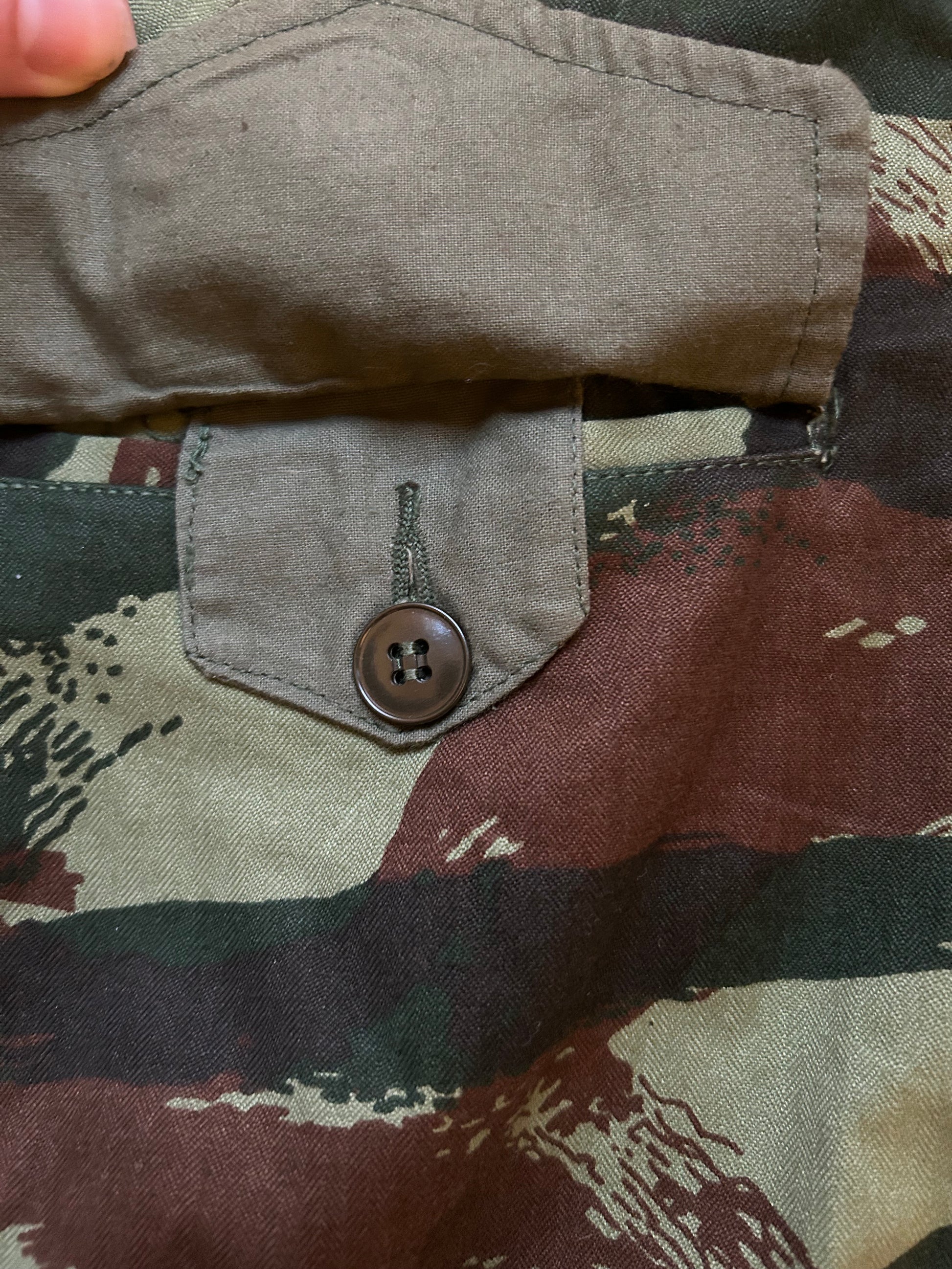 French lizard is one of the most famous camo patterns of the 20th century, and also one that has so many variants still going around! The lizard uniforms were used initially during the Algerian War (1954-1962), but the use continued well after the period. This specific item is dated from 1977 as per label inside.
