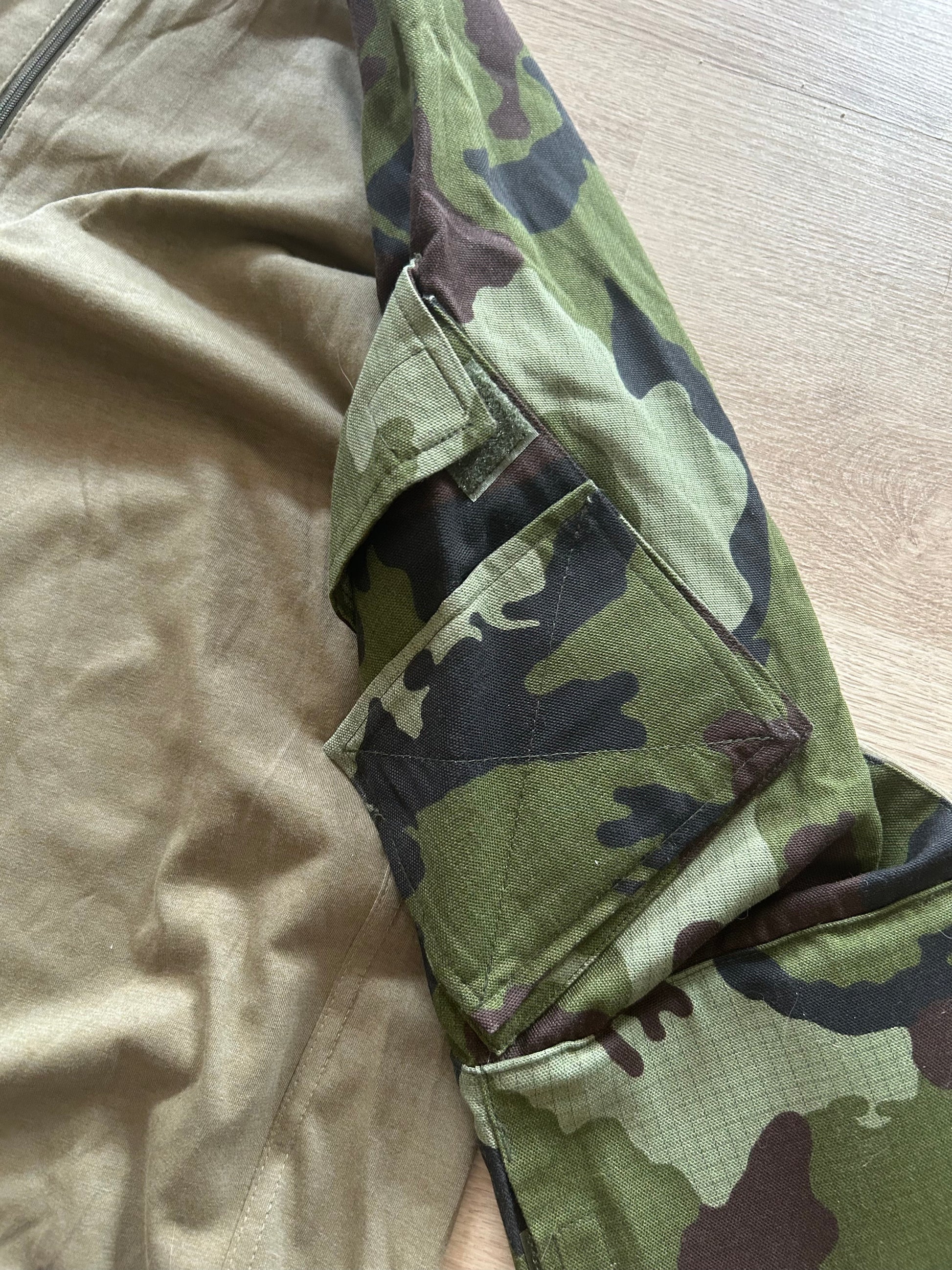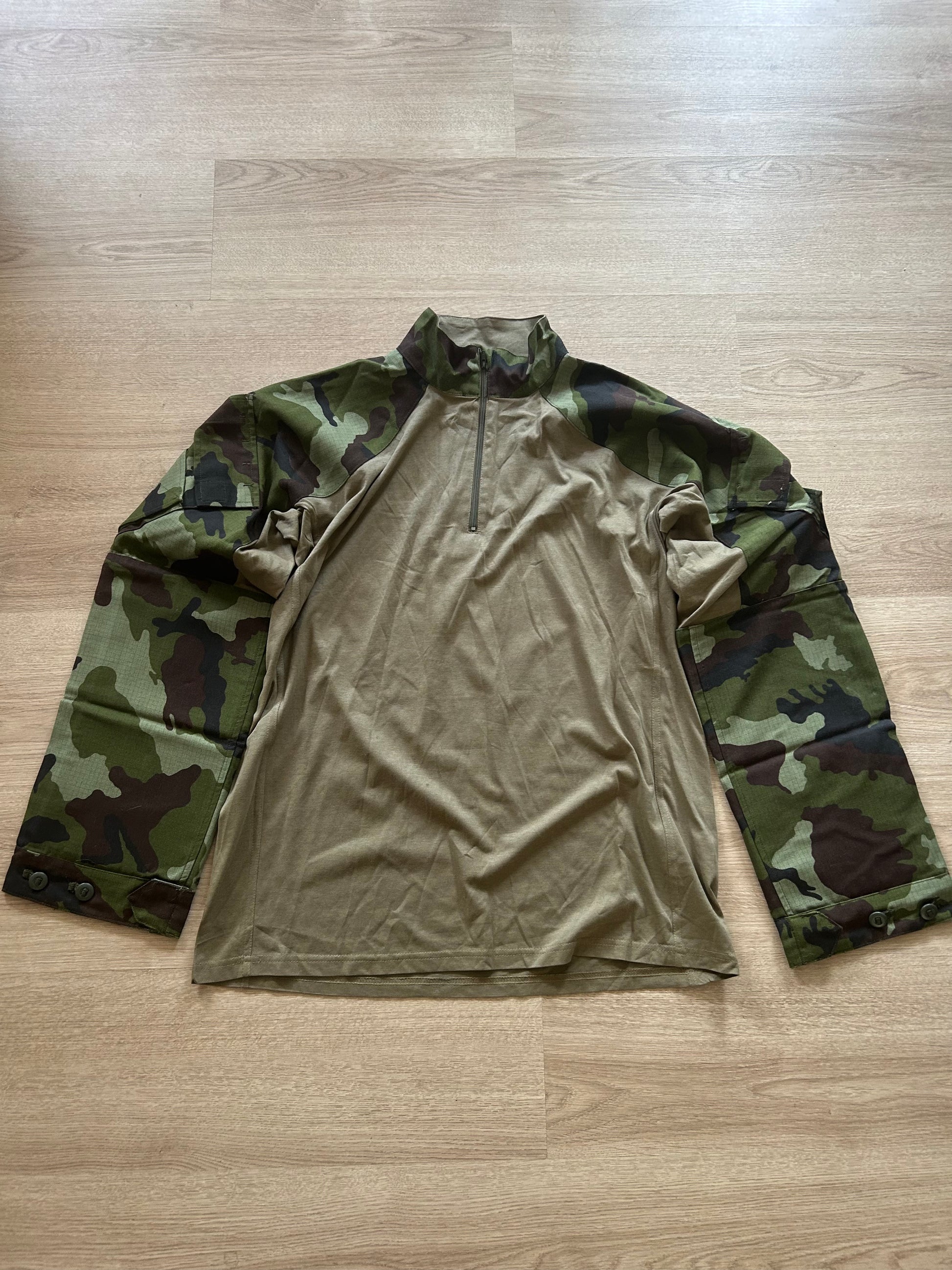 Today I offer you genuine Irish Defence Forces DPM UBAC! It comes with two velcro pockets on shoulders and overall very sturdy and reinforced sleeve area. The fabric used on sleeves is way thicker and resistant than the usual ripstop on DPM items.